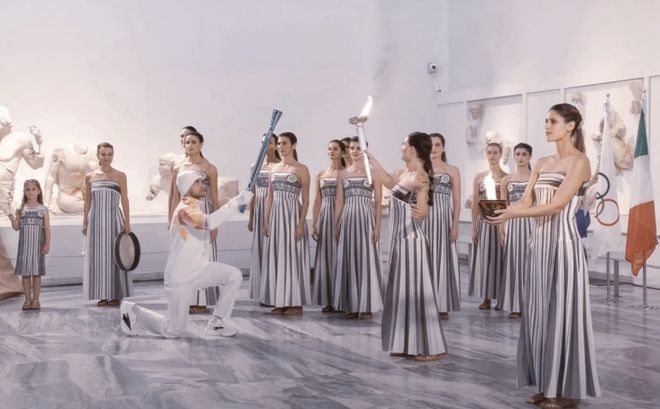 就在近期,2026年米兰-科尔蒂纳冬奥会的火种在希腊古奥林匹亚采集,首棒火炬手赛艇名将盖达齐斯,穿着的正是安踏跑鞋。这一具有历史性意义的画面,同样是对安踏专业实力与国际影响力的一次背书。