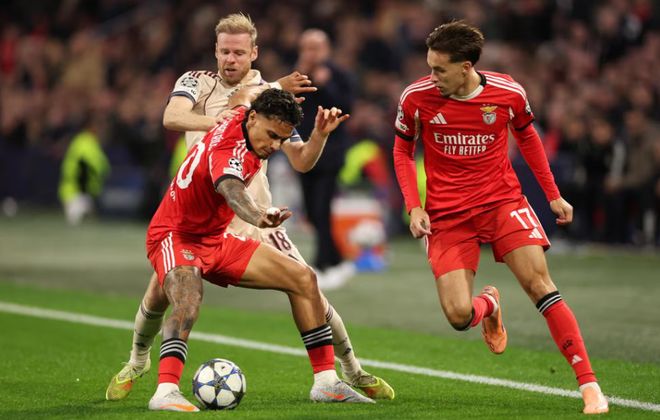 本场比赛,曼城大面积轮换,包括哈兰德在内的大多数主力坐在替补席,主教练瓜迪奥拉的调整影响了全队战斗力。主场面对勒沃库森,曼城创造威胁攻势寥寥无几,只有一次破门良机却没有把握住,反观防线遭到了打穿,来自格里马尔多的抽射破门,帮助勒沃库森1-0领先,这个比分也保持到上半场结束。 下半场,曼城派出哈兰德、福登、多库、奥赖利多名主力,不仅没有扳平比分,防线还再度被打穿。第54分钟,马扎传中助攻希克头球破门,帮助勒沃库森2-0扩大领先优势,这个比分也保持到比赛结束,送给曼城本赛季欧冠首场败仗。 本菲卡VS阿贾克斯