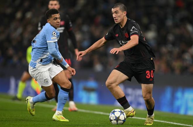 客场面对切尔西,巴萨开场之后基本被压着打,不到30分钟被打进三球,不过两个球无效。开场4分钟恩佐破门,因福法纳手球在先。第23分钟,恩佐再度破门,但查洛巴越位干扰进球无效。第27分钟,内托抢点攻门,造成孔德解围自摆乌龙,巴萨客场0-1落后陷入绝境。上半场结束之前,巴萨再遭打击,阿劳霍两黄变一红被罚下场。 下半场第55分钟,巴萨再度丢球,埃斯特旺前场一条龙破门,随后第73分钟,德拉普推射破门,帮助切尔西3-0锁定胜局。 曼城VS勒沃库森