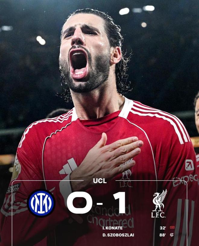 国米0-1利物浦 正处于将帅不和的利物浦,此役远赴梅阿查挑战国际米兰,外界基本认定斯洛特将凶多吉少,要知道5轮欧冠小组赛后,蓝黑军团仅仅只丢3球,此役又是主场作战,红军想全身而退太难啦。可谁想到,比赛一开打,红军就反客为主,开场就像按下狂攻按钮,琼斯、赫拉芬贝赫、埃基蒂克轮番试射,但国米门将索默状态拉满,连续把红军的炮火统统挡出。第31分钟,埃基蒂克角球头球摆渡助攻科纳特破门,全队都在庆祝,但VAR突然介入。慢镜头显示:埃基蒂克有手球动作!进球无效。双方0-0进入中场休息。