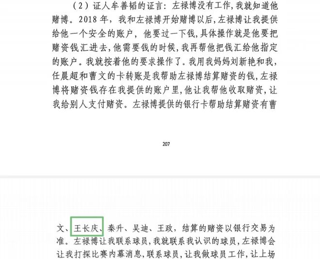 根据网上公开的前八一球员左禄博赌球案的判决书显示,王长庆的确在该案中受到了牵连。据王长庆本人证言供述,他从2020年开始就在左禄博那里赌球,总共下注高达200~300万元;他还指称左禄博“天天赌球、靠赌球赚钱”。