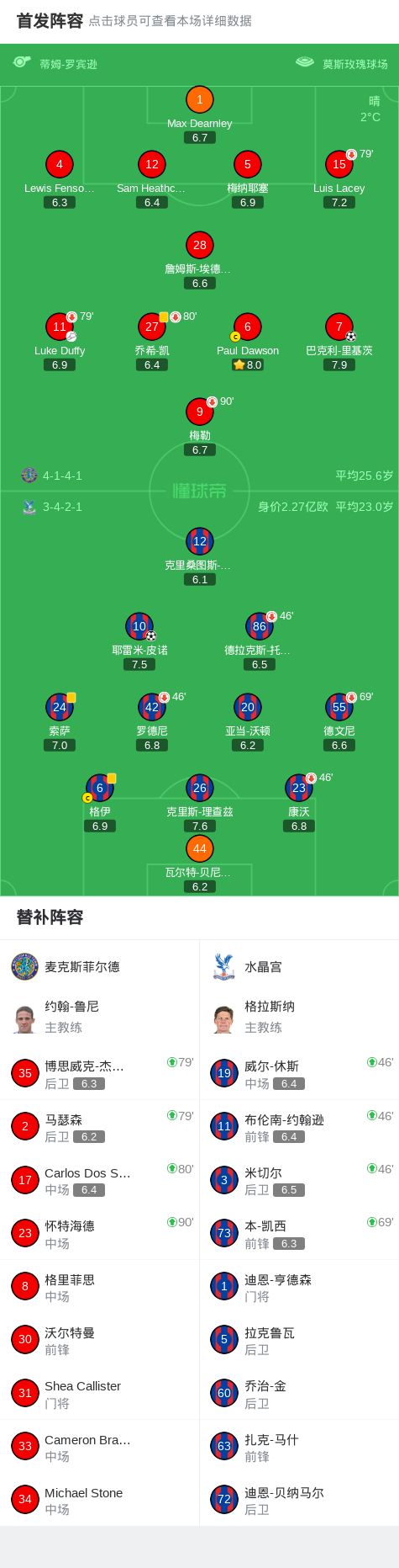第43分钟,道森抢点破门,麦克斯菲尔德1-0领先卫冕冠军水晶宫!